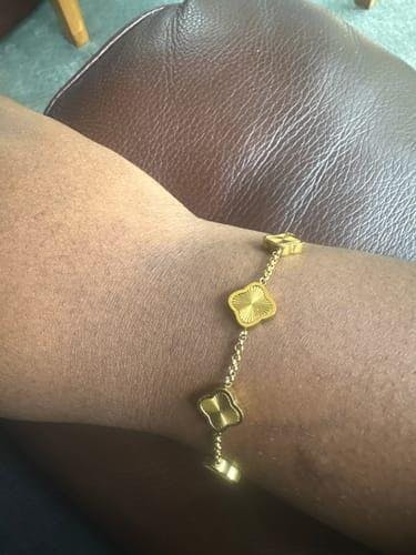 Meticulously designed in the UK and handcrafted with real 18K gold plating, the Celine Clover Bracelet combines elegance with everyday durability.